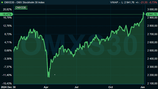 I storbolagsindex steg försvarsbolaget Saab 2 procent. Under veckans två tidigare handelsdagar har bolaget avancerat knappt 12 procent och sedan årsskiftet är aktien upp knappt 20 procent. Europeiska försvarsbolag följde samma utveckling i spåren av geopolitisk oro.