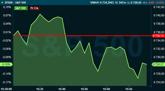 Vid 15.55-tiden var Dow Jones industriindex upp 0,1 procent till 46.748, medan breda S&P 500 var ned 0,1 procent till 6.728. Tekniktunga Nasdaq Composite sjönk 0,3 procent till 22.919.