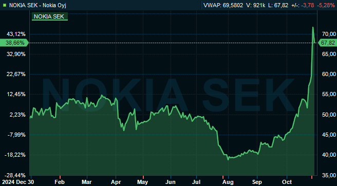 "Sammantaget är nyheten positiv för Nokia men gårdagens kursreaktion verkar ändå vara väldigt kraftig", skriver det finländska analyshuset Inderes.