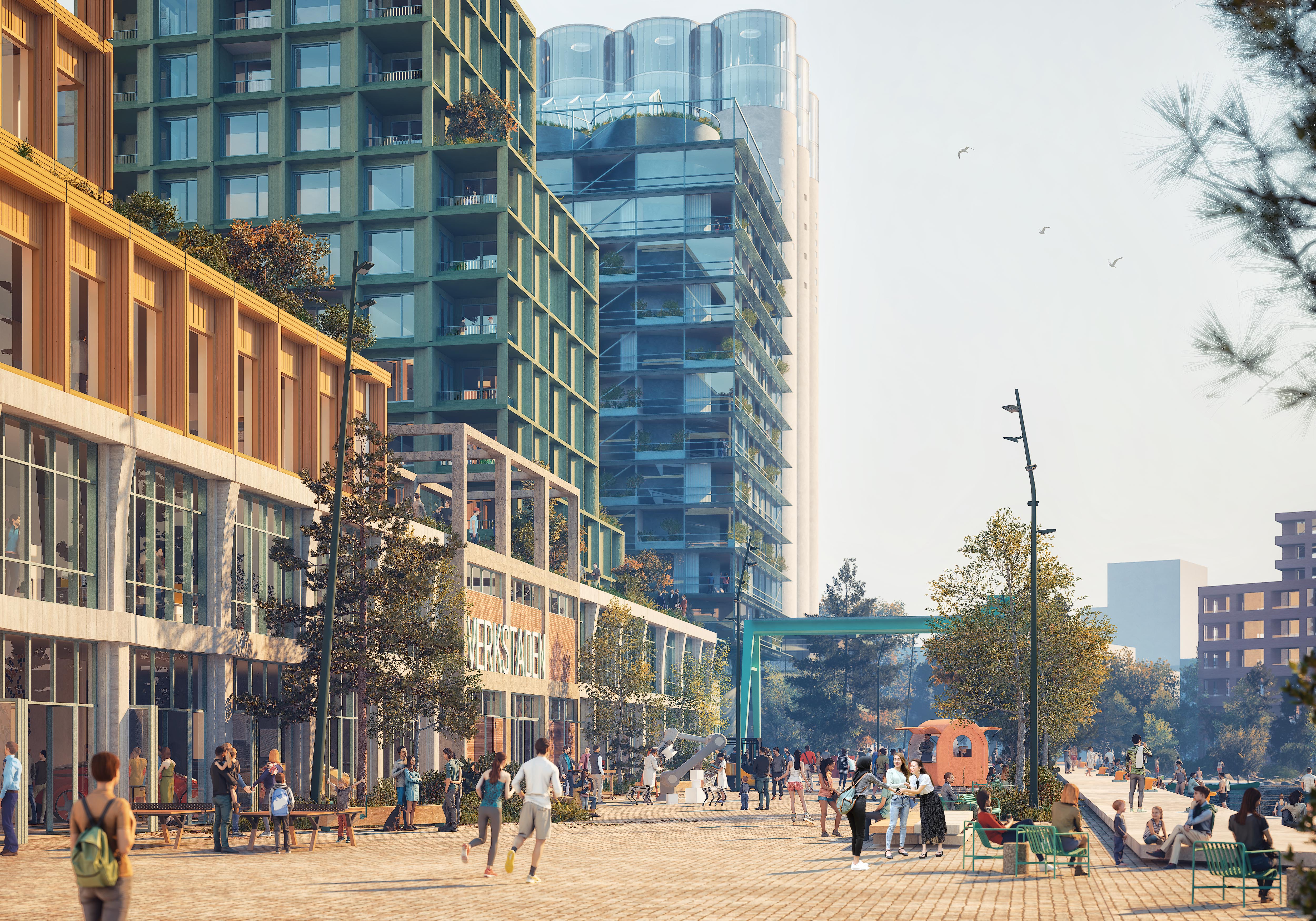 The Silokvarteren neighborhood is planned as a so-called 15-minute city, where housing, services, workplaces, schools, culture and recreation are within walking and cycling distance. Public spaces, parks and quaysides make Lake Mälaren more accessible and create new meeting places that strengthen city life all year round.