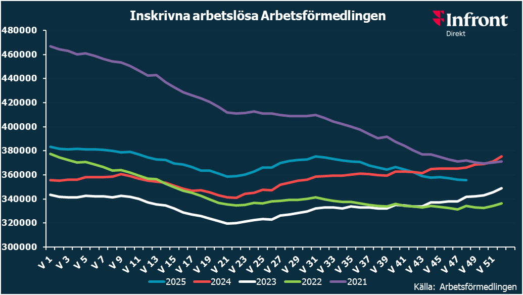 ANTALET ARBETSLÖSA SJÖNK TILL 355.356 V 48