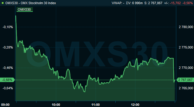 Vid stängning var det svenska storbolagsindexet OMXS30 ned 0,6 procent vid nivån 2.767. Aktieaffärer för 11 miljarder kronor hade då gjorts på Stockholmsbörsen i sin helhet.