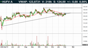 Hufvudstaden-aktien handlas i stigande trend och aktien är intressant inför test av motståndet vid 125 kronor. Bryter aktien upp utlyses köpsignal och vidare uppgångar indikeras. Sker uppbrottet under tilltagande omsättning, förstärker det signalvärdet i kursrörelsen. I skrivande stund handlas aktien omkring neutrala kursnivåer till RSI 53, mellan 50- (124kr) och 200-dagars (123kr) glidande medelvärden. Köp på eventuellt uppbrott föreslås inom affärsintervallet 125-126 kronor med målkurs 140 kronor på medellång sikt. Stop loss anges vid 122 kronor.
