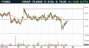 Fabege-aktien har under en längre tid rört sig inom konsolideringsintervallet 80-88 kronor. Under våren har aktien rekylerat för att återigen vara aktuell inför test av motståndet vid 80 kronor. Bryter aktien upp, utlyses köpsignal och vidare uppgångar indikeras. Sker uppbrottet under tilltagande omsättning, förstärker det signalvärdet i kursrörelsen. I skrivande stund handlas aktien omkring neutrala kursnivåer till RSI 55, lägre än både 50- (80kr) och 200-dagars (81kr) glidande medelvärden. Köp på eventuellt uppbrott underifrån föreslås inom affärsintervallet 80-81 kronor med målkurs 89 kronor på medellång sikt. Stop loss anges vid 78 kronor.