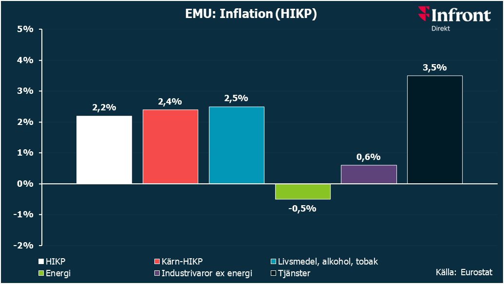 STOCKHOLM (Nyhetsbyrån Direkt) Inflationstakten (HIKP) i euroområdet steg till 2,2 procent i november jämfört med 2,1 procent i oktober.