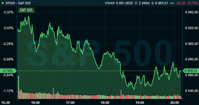 Strax innan 20-tiden var Dow Jones industriindex oförändrade vid 49.241, medan breda S&P 500 sjönk 0,9 procent till 6.895. Tekniktunga Nasdaq Composite backade 2 procent till 22.793.