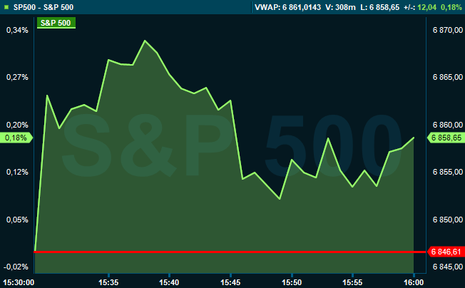 Vid 15.55-tiden var Dow Jones industriindex upp 1 procent till 48.370 medan breda S&P 500 steg 0,2 procent till 6.858. Det tekniktunga Nasdaq Composite föll 0,3 procent till 23.397.