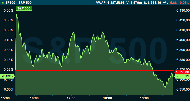 Vid 19.45-tiden steg Dow Jones industriindex 0,4 procent till 45.331, samtidigt som breda S&P 500 var ned 0,1 procent till 6.363. Det tekniktunga Nasdaq Composite sjönk med 0,5 procent till 20.852.