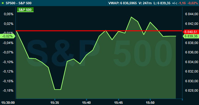 Vid 15:55-tiden var Dow Jones industriindex upp 0,2 procent till 47.629, medan breda S&P 500 var oförändrad till 6.839. Tekniktunga Nasdaq Composite sjönk 0,3 procent till 23.502.