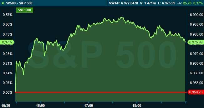 Vid 19-tiden var Dow Jones industriindex ned 1,0 procent till 48.906, medan breda S&P 500 steg 0,4 procent till 6.975. Tekniktunga Nasdaq Composite var upp 0,9 procent till 23.807.