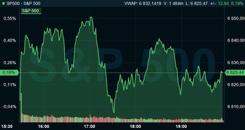 Vid 19.50 tiden var Dow Jones industriindex upp 0,2 procent till 47.393, medan breda S&P 500 steg 0,2 procent till 6.825. Tekniktunga Nasdaq Composite avancerade 0,6 procent till 23.412.