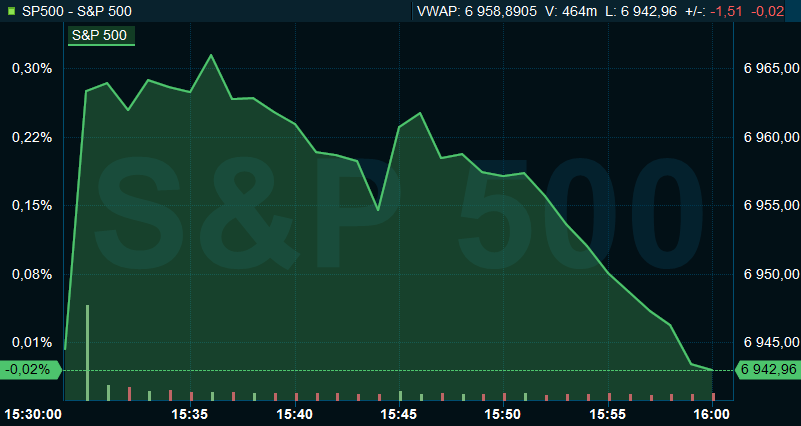Strax före klockan 16 var Dow Jones industriindex ned 0,2 procent till 49.341, medan breda S&P 500 var oförändrat vid 6.946. Tekniktunga Nasdaq Composite avancerade 0,4 procent till 23.578.