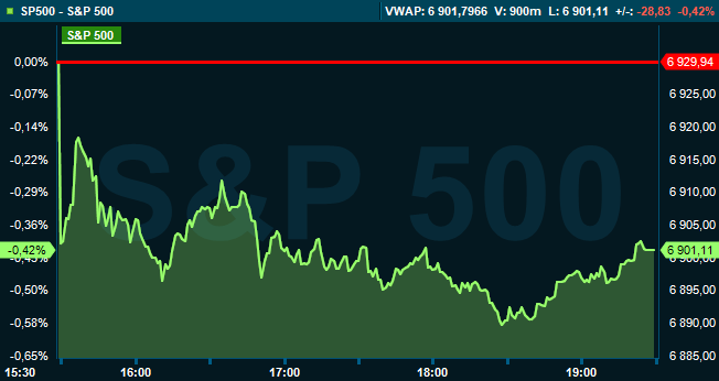 Vid 19.30-tiden var Dow Jones industriindex ned 0,5 procent till 48.486, medan breda S&P 500 sjönk 0,4 procent till 6.901. Tekniktunga Nasdaq Composite var ned 0,6 procent till 23.445.