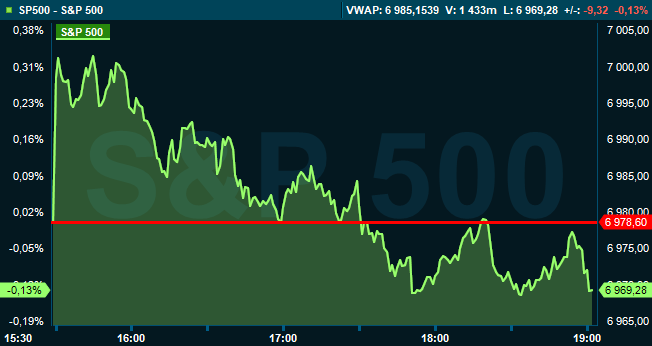 Strax före klockan 19 var Dow Jones industriindex oförändrat vid 48.991, medan breda S&P 500 var ned 0,1 procent till 6.969. Tekniktunga Nasdaq Composite var oförändrat vid 23.817.