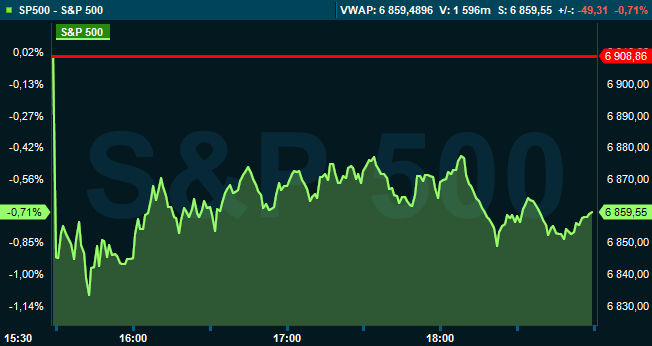 Vid 19.00-tiden var Dow Jones industriindex ned 1,4 procent till 48.832, medan breda S&P 500 sjönk 0,7 procent till 6.859. Tekniktunga Nasdaq Composite backade 1,1 procent till 22.631.