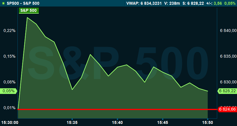 Omkring klockan 15.50 var S&P 500 upp knappt 0,1 procent till 6.828. Dow Jones industriindex hade sjunkit 0,4 procent till 48.006 medan tekniktunga Nasdaq kompositindex var upp 0,5 procent till 22.929.