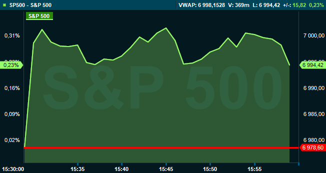 Strax före klockan 16 var Dow Jones industriindex oförändrat vid 49.004, medan breda S&P 500 var upp 0,2 procent till 6.994. Tekniktunga Nasdaq Composite steg 0,6 procent till 23.948.