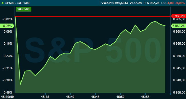 Vid 15.55-tiden var Dow Jones industriindex ned 0,3 procent till 49.336, medan breda S&P 500 backade 0,1 procent till 6.962. Tekniktunga Nasdaq Composite var ned 0,1 procent till 23.662.