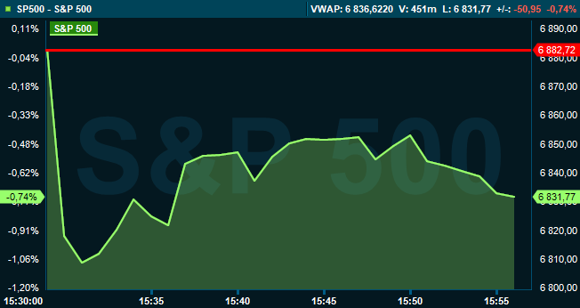 Strax före klockan 16 var Dow Jones industriindex ned 0,5 procent till 49.253, medan breda S&P 500 hade fallit 0,7 procent till 6.831. Tekniktunga Nasdaq Composite sjönk 0,5 procent till 22.792.