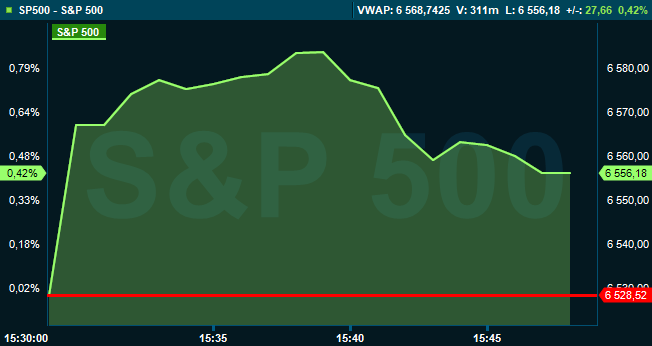 Vid 15.50-tiden steg Dow Jones industriindex 0,3 procent till 45.505, samtidigt som breda S&P 500 var upp 0,4 procent till 6.556. Det tekniktunga Nasdaq Composite-indexet steg med 0,7 procent till 21.746.
