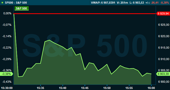 Vid 16-tiden var Dow Jones industriindex ned 0,3 procent till 48.568, medan breda S&P 500 sjönk 0,4 procent till 6.903. Tekniktunga Nasdaq Composite var ned 0,6 procent till 23.442.