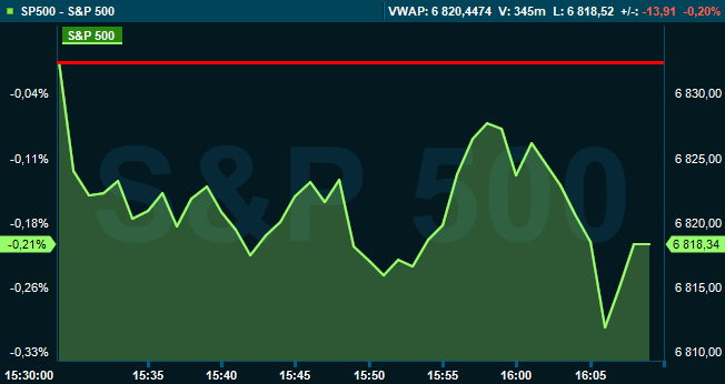 Vid 16.05-tiden var Dow Jones industriindex upp 0,2 procent till 47.462, medan breda S&P 500 var ned 0,2 procent till 6.821. Tekniktunga Nasdaq Composite backade 0,5 procent till 23.420.