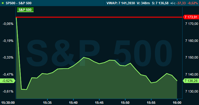 Vid 16.00-tiden var Dow Jones industriindex upp 0,1 procent till 49.200, samtidigt som breda S&P 500 var ned 0,5 procent till 7.136. Det tekniktunga Nasdaq Composite föll 0,9 procent till 24.679.