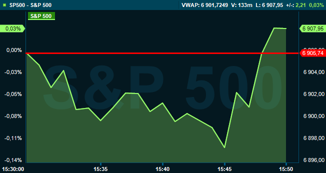 Vid 15.55-tiden var Dow Jones industriindex oförändrad till 48.443, medan breda S&P 500 var oförändrad till 6.908. Tekniktunga Nasdaq Composite var upp 0,1 procent till 23.490.