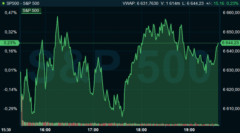 Vid 19.35-tiden var Dow Jones industriindex upp 0,3 procent till 46.091, medan breda S&P 500 avancerade 0,2 procent till 6.640. Tekniktunga Nasdaq Composite steg 0,2 procent till 22.603.