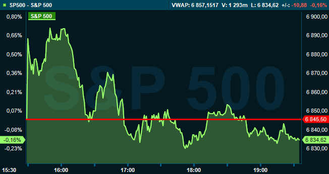 Vid 19.30-tiden var Dow Jones industriindex upp 0,2 procent till 48.143, medan breda S&P 500 sjönk 0,2 procent till 6.834. Tekniktunga Nasdaq Composite backade 0,3 procent till 23.179.