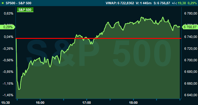 Vid 19.00-tiden var Dow Jones industriindex ned 0,3 procent till 47.299, medan breda S&P 500 var upp 0,3 procent till 6.756. Tekniktunga Nasdaq Composite var upp 0,5 procent till 22.984.