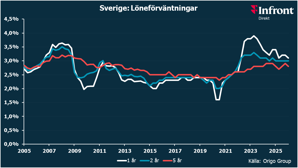 LÄGRE LÖNEFÖRVÄNTNINGAR PÅ ETT OCH FEM ÅRS SIKT
