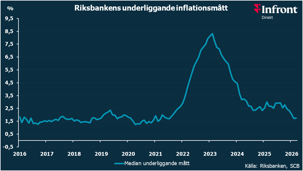 MEDIAN UNDERLIGGANDE INFLATION 1,8% I MARS