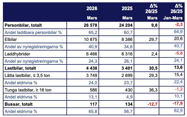 - I nuläget syns inga tydliga effekter av kriget i Mellanöstern i nyregistreringarna, men om konflikten blir långvarig kan konsekvenserna bli betydande. Samtidigt missar regeringen möjligheten att snabba på elektrifieringen, särskilt av kommersiella transporter, där fler åtgärder hade kunnat ge omedelbar effekt, säger Emmi Antonsson, chef för kommunikation på Mobility Sweden.