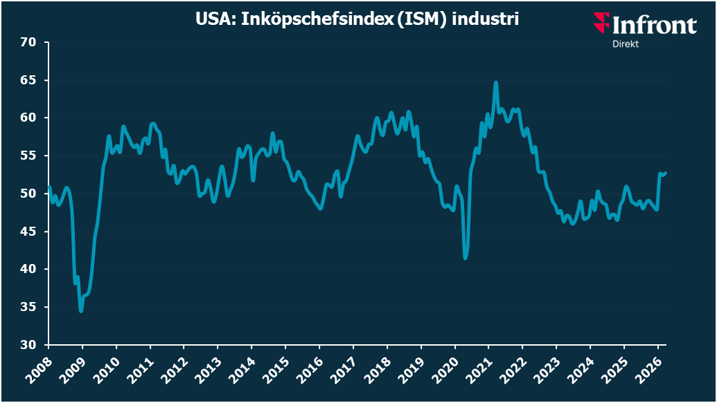 Grovt kan sägas att värden under 50 tyder på avmattning och över 50 på ekonomisk tillväxt.